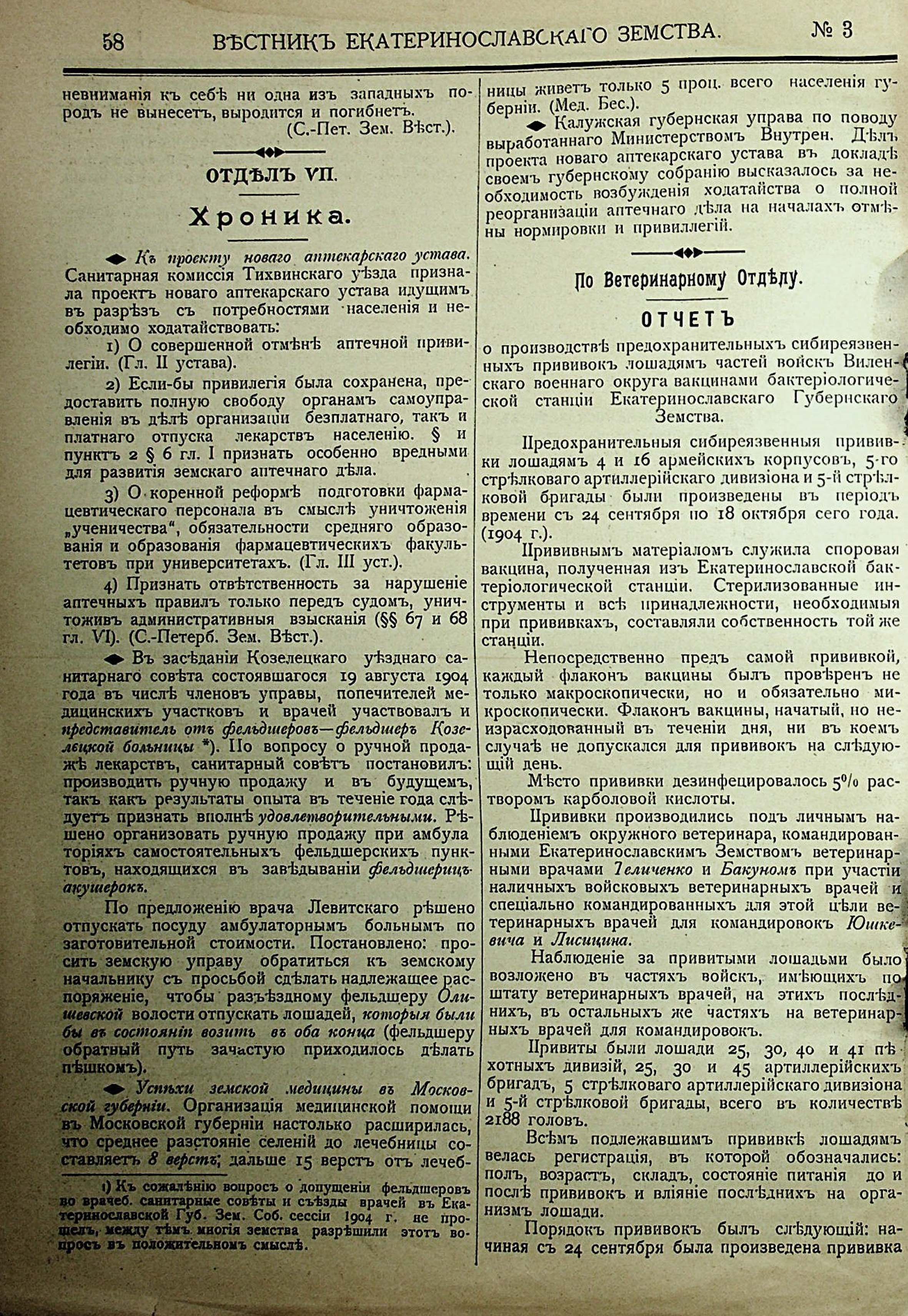 Отделъ VII. Хрониа. По Ветеринарному Отделу. Отчетъ
