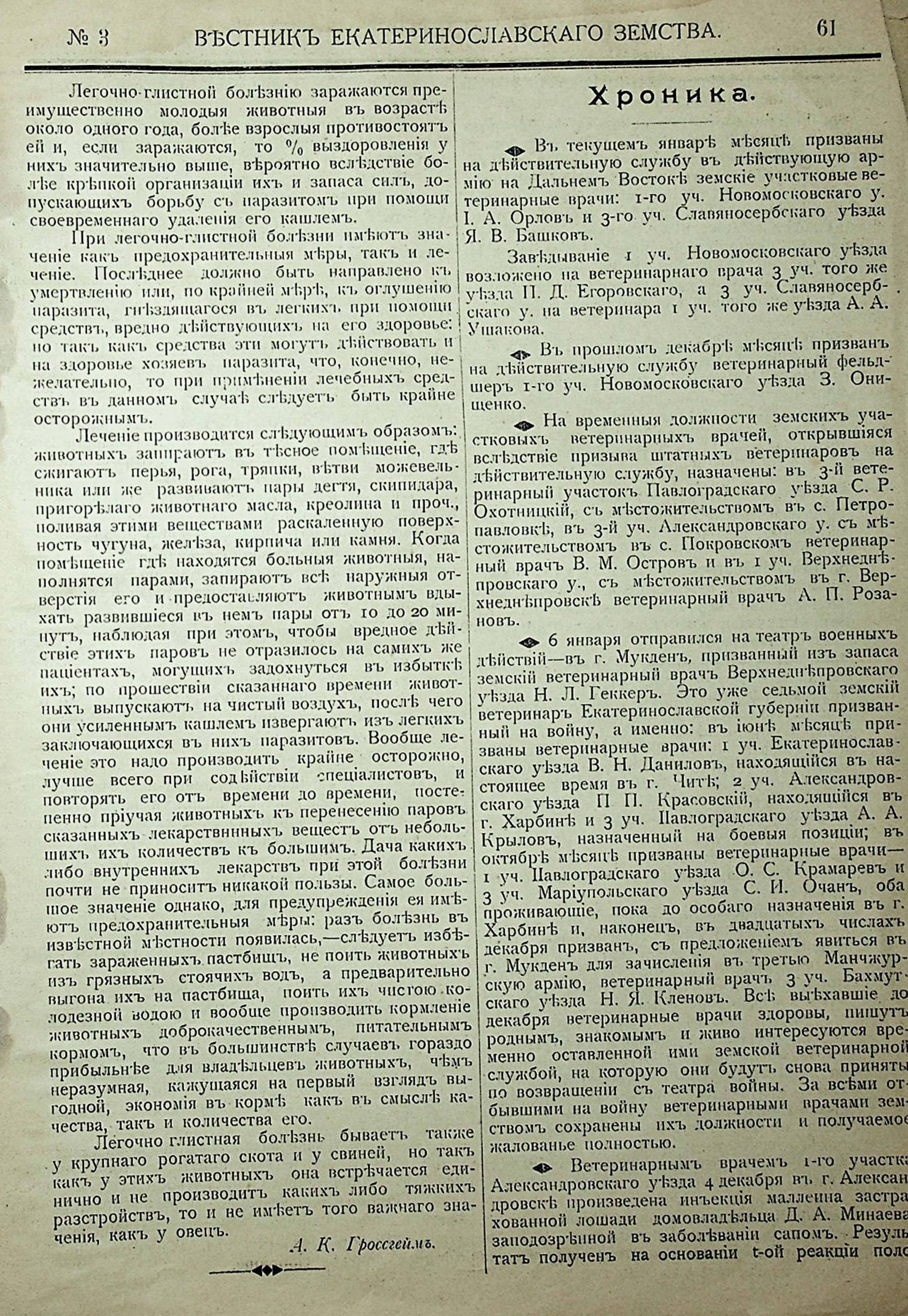 36. Отделъ VII. Хрониа. По Ветеринарному Отделу. Отчетъ