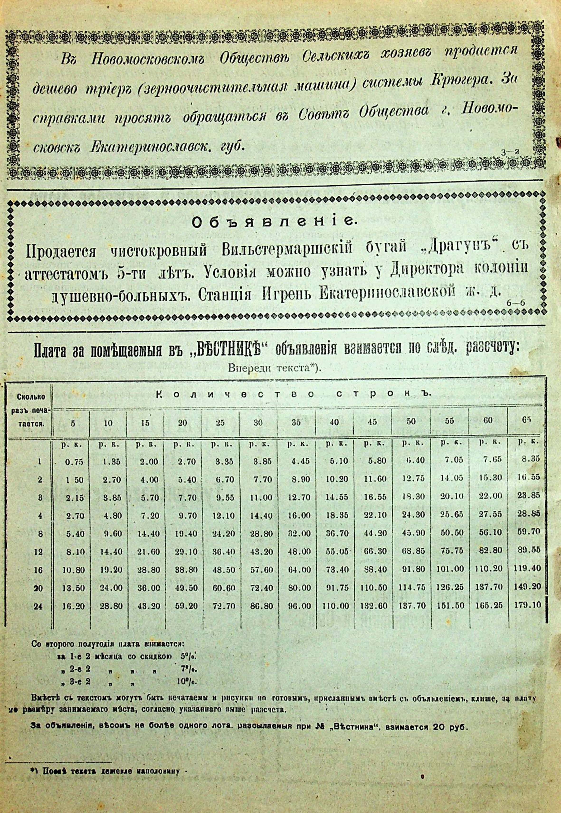 34. Объявленіе отъ Покровскаго общества сельскаго хозяйства