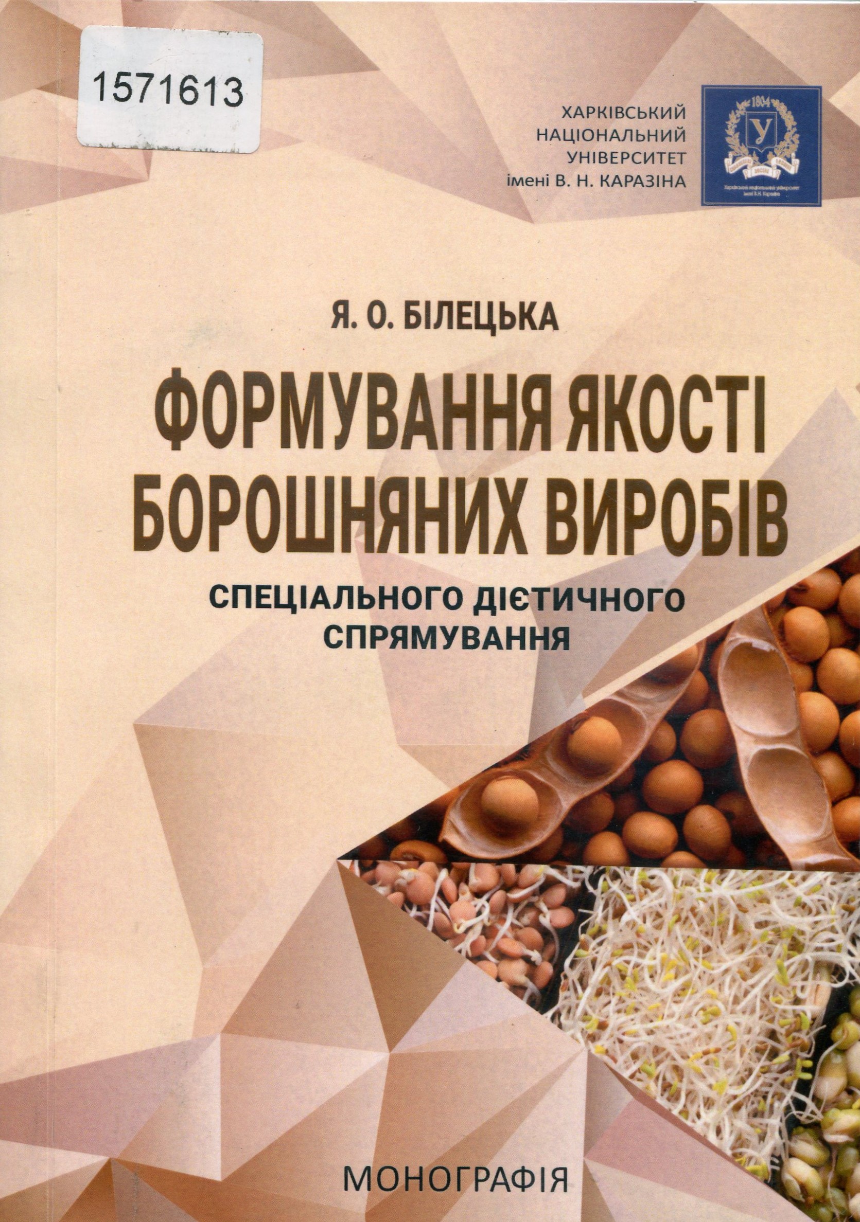 664.66 (02.064) Б 11 Білецька Я.О. Формування якості борошняних виробів спеціального дієтичного спрямування: монографія / Я.О.Білецька.- Харків: ХНУ імені В.Н. Карамзіна, 2020.- 116 с.