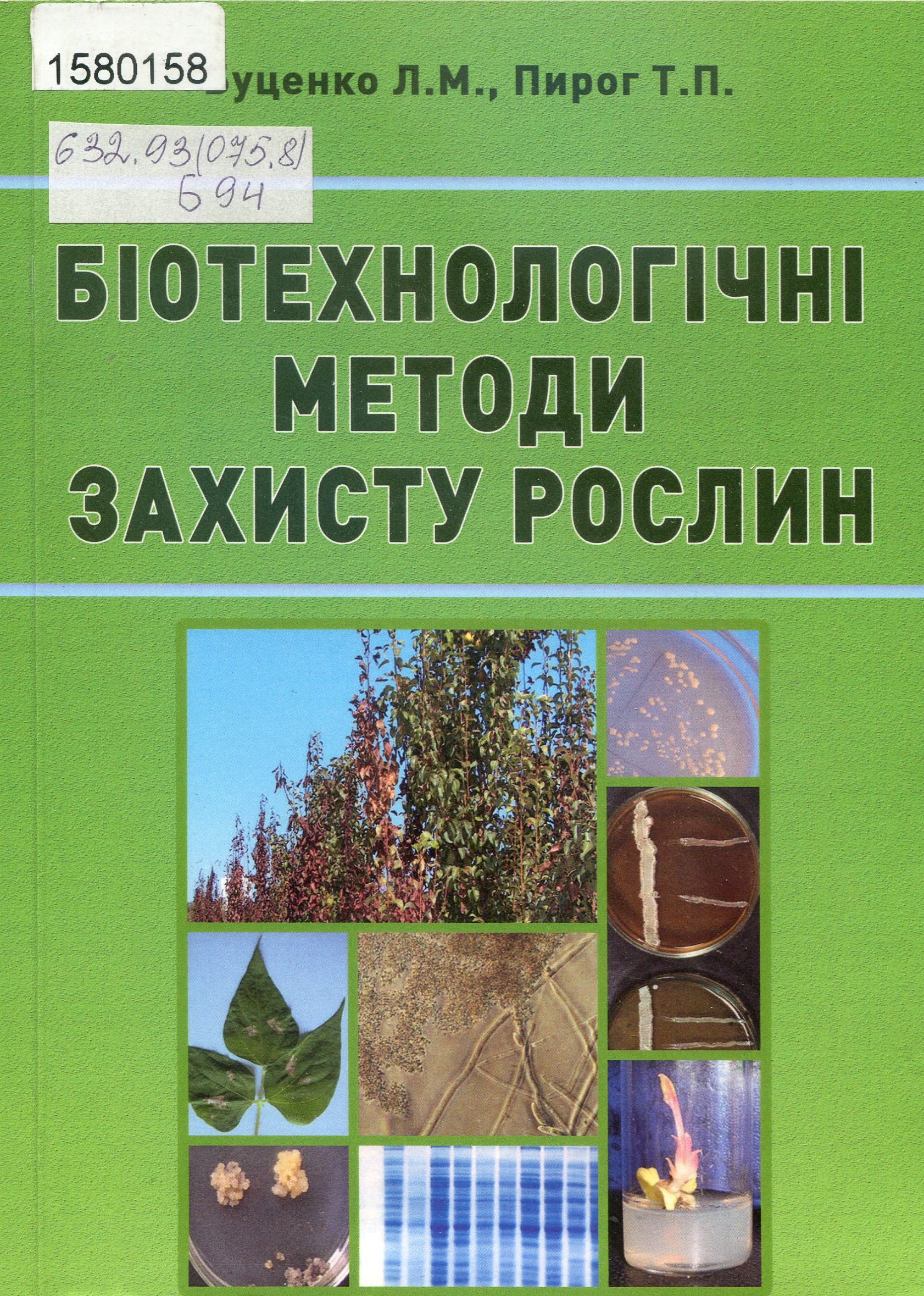 1580158 632.93(075.8) Б 94 Буценко Л.М., Пирог Т.П. Біотехнологічні методи захисту рослин: підручник.- К.: Видавництво Ліра-К, 2021.- 346 с. У підручнику висвітлено питання щодо виробництва та застосування біотехнологічних препаратів для захисту рослин від збудників хвороб та шкідників і підвищення врожайності рослин, а також використання методів біотехнології рослин для оздоровлення посадкового матеріалу. |