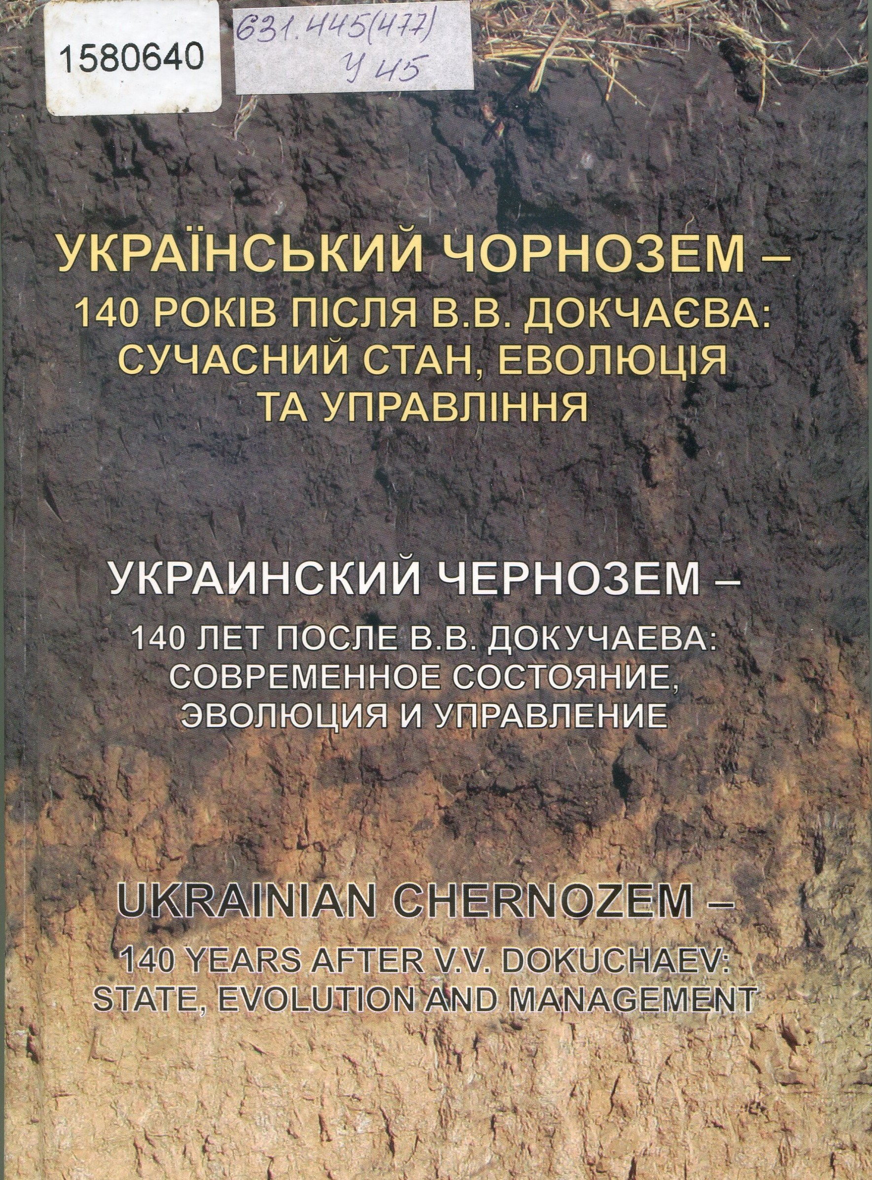 1580640 631.445(477) У 45 Український чернозем - 140 років після В.В. Докучаєва: сучасний стан, еволюція та управління: монографія/ С.А. Балюк, В.Б.Соловей.- Харків: ДІСА ПЛЮС, 2021. 192 с. Показано важливість чорноземів як еталона ґрунтів у гарантуванні продовольчої безпеки України, виконанні продуктивних та екологічних функцій і забезпеченні сталого розвитку. |