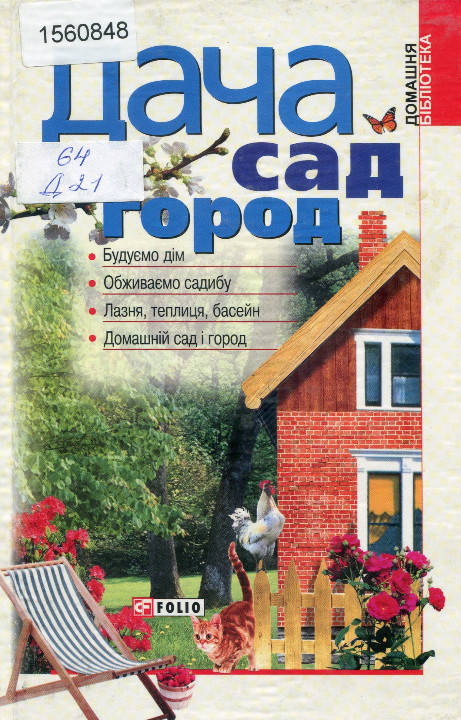 1560848 64 Д 21 Дача.Сад. Город / Худож.-оформлювач О.С.Юхтман.- Харків: Фоліо, 2006.- 255с.-(Домашня бібліотека) Ця книжка для тіх, хто має дачні ділянки. Ви дізнаєтесь, як правильно збудувати дім, лазню, господарські будівлі, як закласти сад і город, обробляти ґрунт, ходити за рослинами, як боротися зі шкідниками... У книжці також докладно розповідається, як зібрати, зберегти та переробити врожай; надаються рецепти домашніх заготовок; пропонуються календарі садівника і городника. |