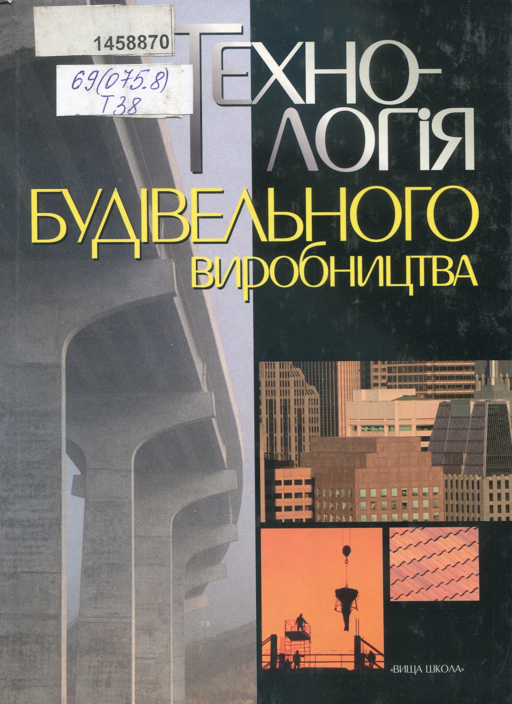 1458870 69 (075.8) Т 38 Технологія будівельного виробництва: Підручник / М.Г. Ярмоленко, Є.Г. Романушко, В.І. Терновий таін.; За ред. М.Г.Ярмоленка. - 2-ге вид., допов. переробл.- К.: Вища шк., 2005.- 342 с.с.: іл Розглянуто сучасні методи, засоби та технологічні рішення зведення громадських і промислових будівель та інженерних споруд. Питання технології будівельного виробництва у взаємозв'язку з архітектурною споруд і конструктивними й естетичними вимогами до них. Для стентів вищих навчальних закладів, які навчаються за спеціальністю "Архитектура". |