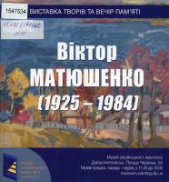 Віктор Матюшенко (1925-1984) [Текст] : виставка творів та вечір пам'яті: альбом вибраних творів / Музей укр. живопису; авт. передм. В. Кулічихін. - Б. м. : Арт-пресс, 2015. - 8 с. : кольор. іл.